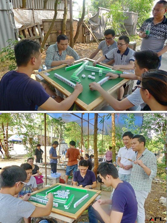 活动继续中,食物填饱了肚子,又来娱乐一番,打牌、打麻将,看谁的运气好?