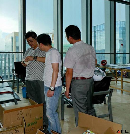 来到项目部,随处可见公司标语及LOGO。公司员工也都正在各自岗位奋战,天气虽然酷热,汗流浃背,爱富兰人依然吃苦耐劳,孜孜不倦的在自己的岗位上辛勤工作。